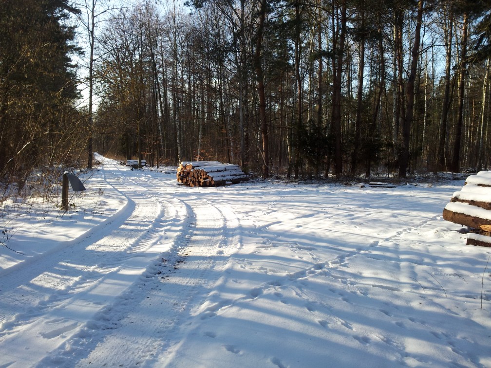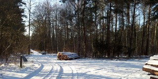 Wymyślanie tras dobiega końca. Oto pocztówka z trasy rowerowej, zrobiona wczoraj tuż przed wieczorem. Po lasach biega się na razie bajecznie: wszędzie około 5 cm śniegu i nie jest mokro. Na polach uprawnych można spotkać stada saren i żurawi na wspólnych kolacjach.